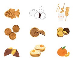 - 1군밤 ,군고구마 ,붕어빵 ,호빵 ,국화빵 ,호떡 ,( 어묵 겨울 )